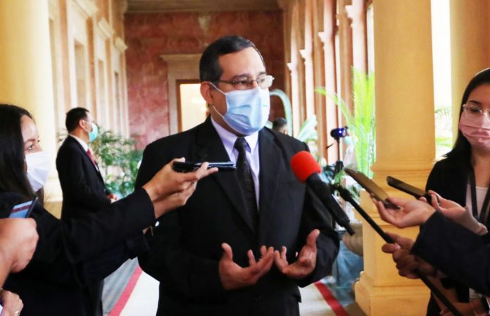 El ministro de Salud Pública, Julio Mazzoleni, acompañado del director del Servicio Nacional de Erradicación del Paludismo (Senepa), Hernán Rodríguez, se reunieron este miércoles con el presidente de la República, Mario Abdo Benítez, en Palacio de Gobierno, para informarle acerca de la campaña nacional de lucha contra el dengue que impulsará la cartera sanitaria.