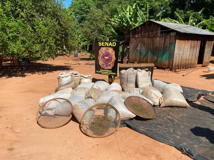 Asunción, Paraguay, Agencia IP.- Agentes especiales de la Secretaría Nacional Antidrogas (Senad) realizaron allanamientos rurales en zona de Maracaná, Canindeyú, mediante los cuales pudieron decomisar más de ocho toneladas de marihuana y la aprensión de una persona con orden de captura por tráfico de drogas que data del 2018.