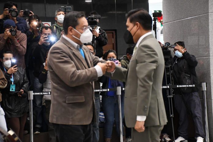 «Retomamos la lucha contra el coronavirus en un momento en que la población necesita tomar conciencia de que debemos aguantar esta pandemia hasta el momento de la vacunación», señaló Arce en el acto de juramentación.