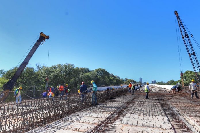 Asunción, Paraguay, Agencia IP.- En el Corredor Vial Botánico se trabaja en las armaduras para el posterior hormigonado del último vano del viaducto de 1.340 metros, el más largo que tendrá la capital del país.