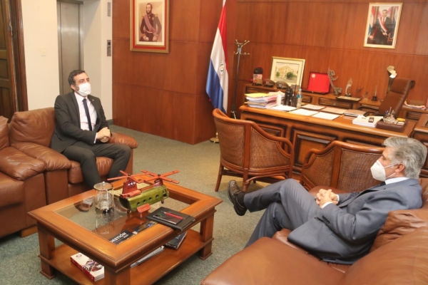Asunción, Paraguay, Agencia IP.- El ministro del Interior, Arnaldo Giuzzio se reunió con el embajador de Gran Bretaña en Paraguay, Ramin Navai, ocasión en la que intercambiaron experiencias y estrecharon lazos de cooperación bilateral.