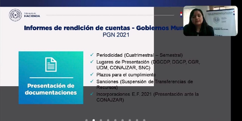 La capacitación fue realizada a través de la plataforma Zoom y estuvo a cargo el coordinador de Transferencias, Nelson Cardozo y la jefa del Centro de Atención a Gobernaciones y Municipios, Norma Rodas.