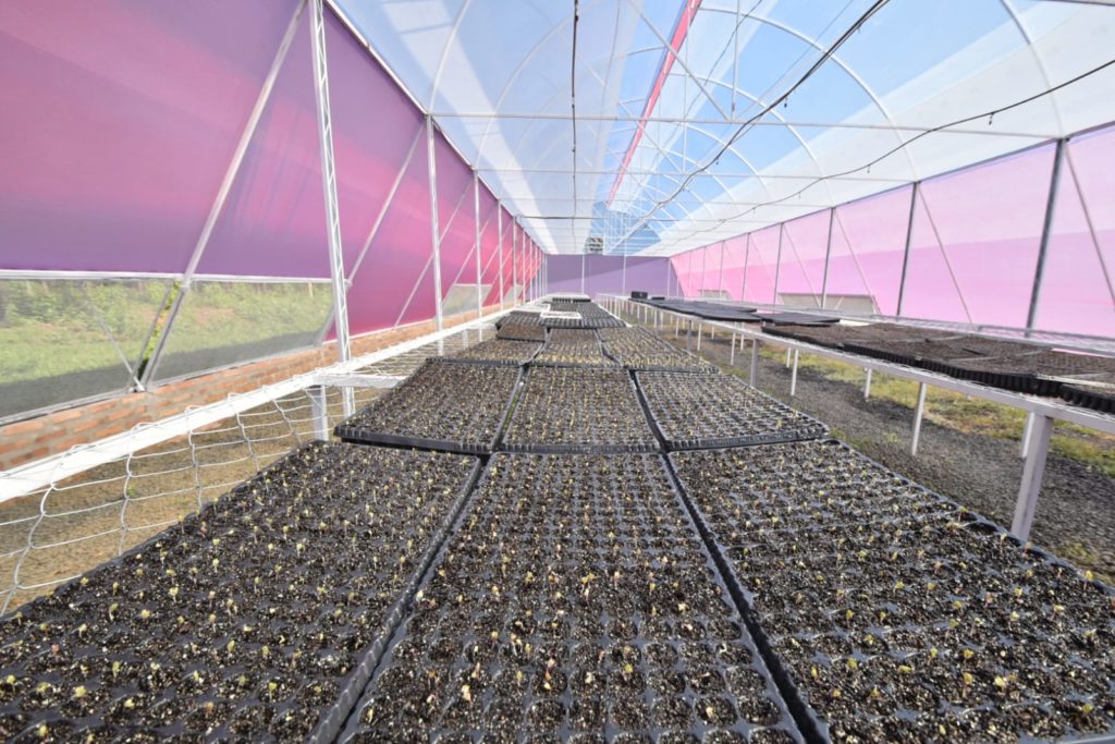 El vivero, ubicado en el barrio Virgen del Rosario, funciona bajo el sistema de invernadero y tiene una capacidad para 100.000 plantínes, que serán distribuidos a los pobladores para que puedan desarrollar sus propias huertas en sus casas.