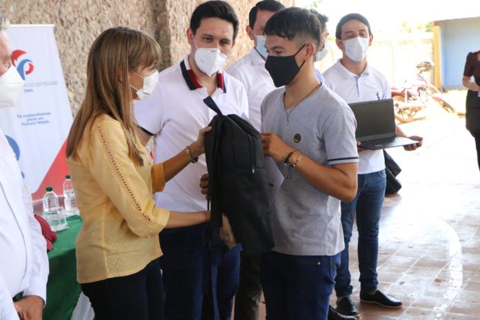 Los beneficiarios recibieron Laptop con pantalla de 12”, procesador Intel N 4000, disco duro de 256 GB o 240 Gb, Memoria Ram de 4 GB, puerto DHMI, Bluetooh, WIFI, Puerto USB, Web Cam, Micrófono, Windows Office 2010 y una mochila porta labtop.