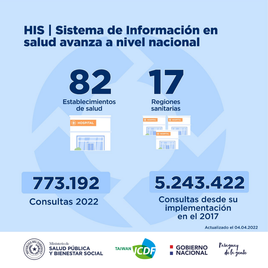 Este proceso de transformación digital es encarado de forma conjunta por el Ministerio de Salud y el gobierno de la República de China (Taiwán), a través del Proyecto para la Mejora de la Eficiencia en la Gestión de la Informática en Salud, con el apoyo del Ministerio de Tecnologías de la Información y Comunicación (MITIC).