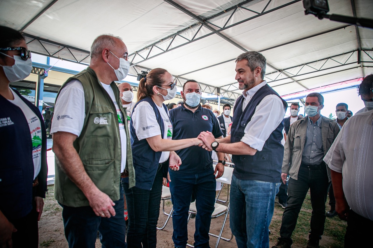 El mandatario acompañó esta mañana la jornada de atención médica en Puerto Casado, Chaco paraguayo, donde la cartera sanitaria desarrolla la estrategia de atención denominada «Salud por el río 2022».