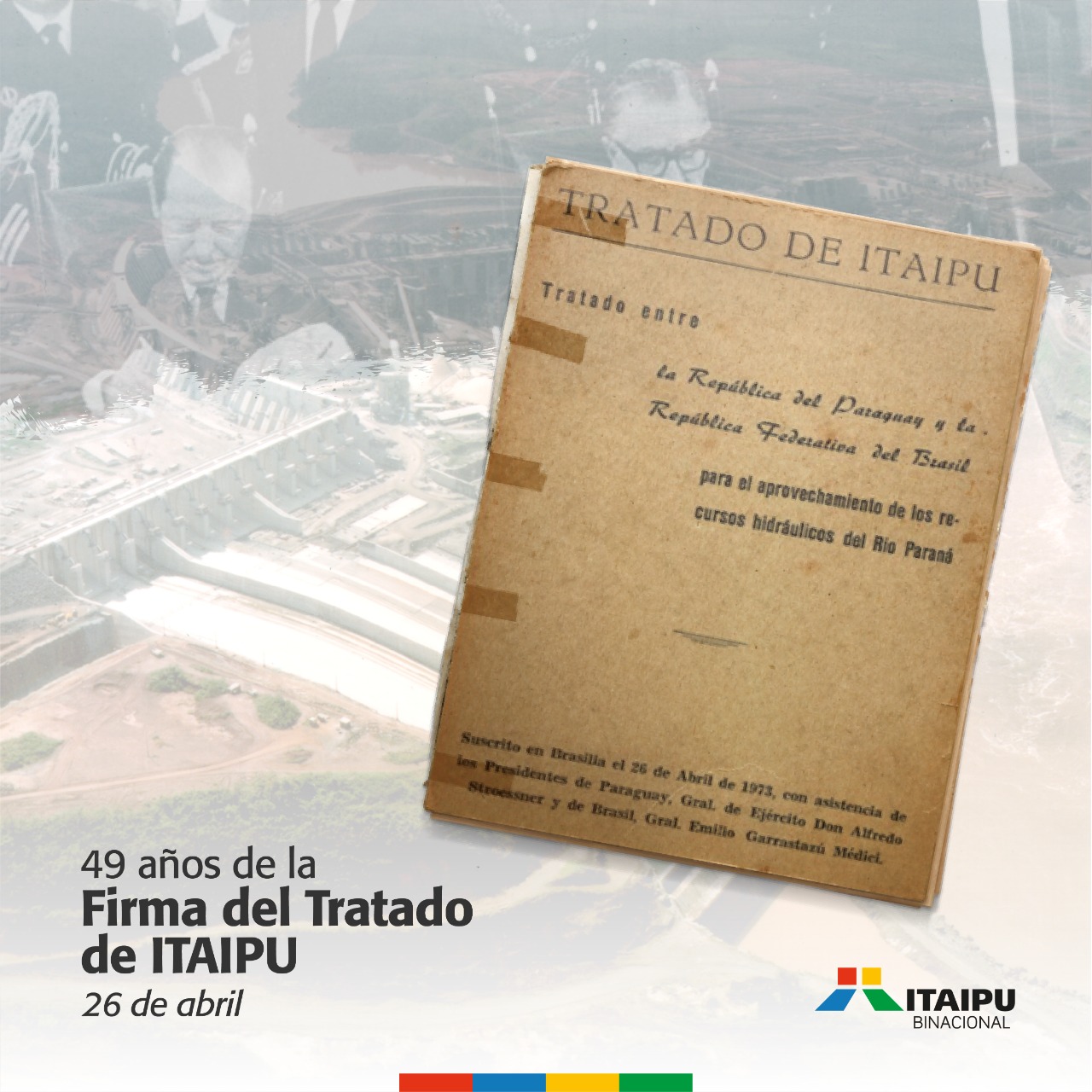La suscripción del tratado tuvo lugar hace 49 años en el Palacio de la Meseta, en Brasilia (Brasil), e intervinieron los entonces presidentes de Paraguay, General de Ejército Alfredo Stroessner, y de Brasil, General de Ejército Emilio Garrastazu Médici. El documento estableció las bases para la construcción de la mayor planta hidroeléctrica en generación de energía del mundo.