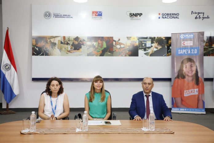 Sape’a es un programa que busca mejorar el acceso a la formación profesional con un enfoque inclusivo y diferencial. Es implementado por Plan Internacional Paraguay junto con el Ministerio de Trabajo y la Fundación Saraki, y el financiamiento del primero junto con la Agencia Española de Cooperación Internacional para el Desarrollo (AECID).