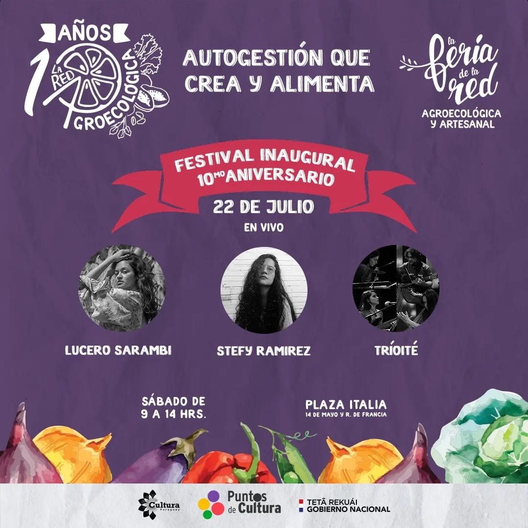 Asunción, Agencia IP.- La Red Agroecológica, organización que reúne cada sábado a productores de la agricultura familiar campesina en la Plaza Italia de Asunción, celebra 10 años con un ciclo cultural de talleres, conciertos y eventos artísticos.