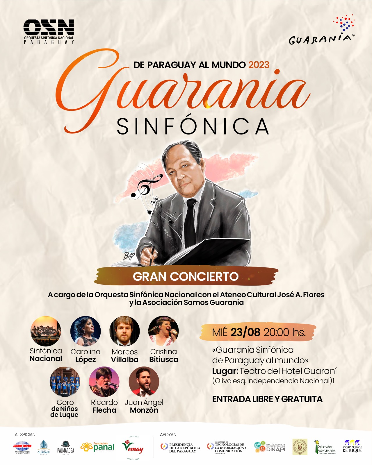 Apoyan el concierto «Guarania Sinfónica» el Ateneo Cultural «José Asunción Flores», la Asociación «Somos Guarania» y el Coro de Niños de Luque.