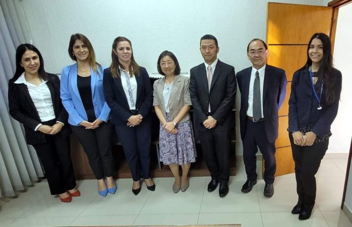 Asunción, Agencia IP.- La presidenta del Crédito Agrícola de Habilitación (CAH), Amanda León recibió en su despacho a la delegación de la Agencia de Cooperación Internacional del Japón (JICA), liderada por su Representante Residente en Paraguay, Takahatake Chika.