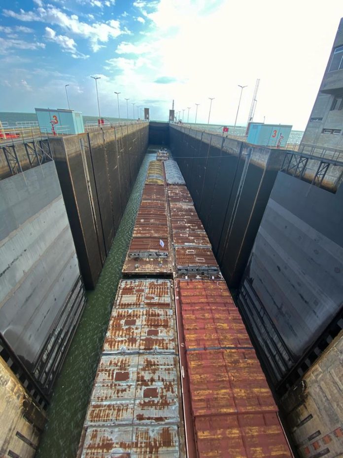Asunción, Agencia IP.- Una operación de la esclusa de navegación de la Central Hidroeléctrica Yacyretá (EBY) permitió este jueves el paso de un cargamento de 21.327 toneladas de soja, hacia los mercados internacionales.