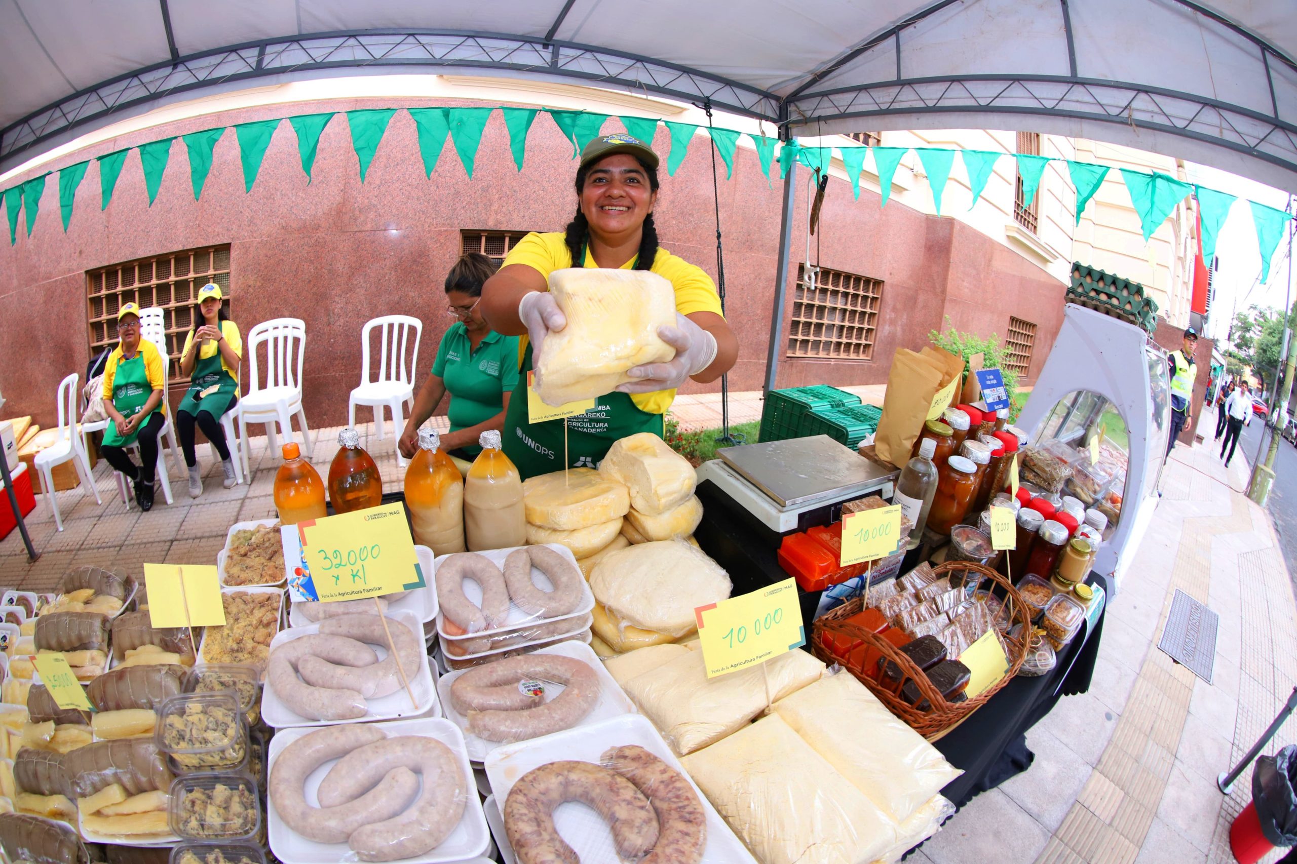 «Tenemos queso paraguay, cuajo, chicharô, milanesa de pescado, huevo casero, carne de cerdo, oveja, gallina casera, frutas, hortalizas, miel», citó Maria Ester Jiménez, productora que vino desde Cambacuá, distrito de San Juan Baustista, departamento de Ñeembucú.