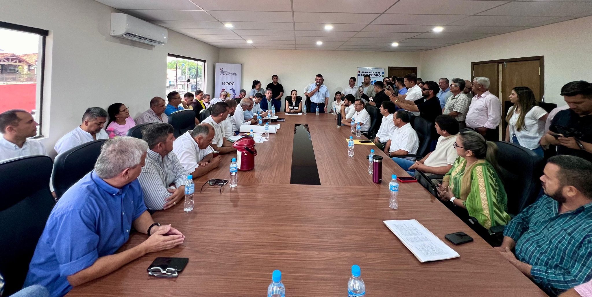 Asunción, Agencia IP.- A fin de coordinar acciones para atender de manera efectiva las necesidades de la población en cuanto a infraestructura vial y otras áreas, la ministra Claudia Centurión participó este miércoles de una mesa de trabajo con autoridades de la Gobernación de San Pedro y con 19 intendentes de ese departamento.