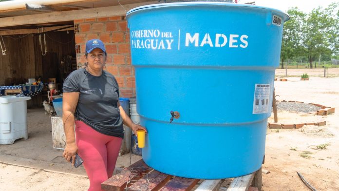 Asunción, Agencia IP.- El Ministerio del Ambiente y Desarrollo Sostenible (Mades), entregó 500 tanques a ocho comunidades vulnerables del Chaco paraguayo, que posibilitarán la captación del vital liquido mediante la cosecha de agua de lluvia.