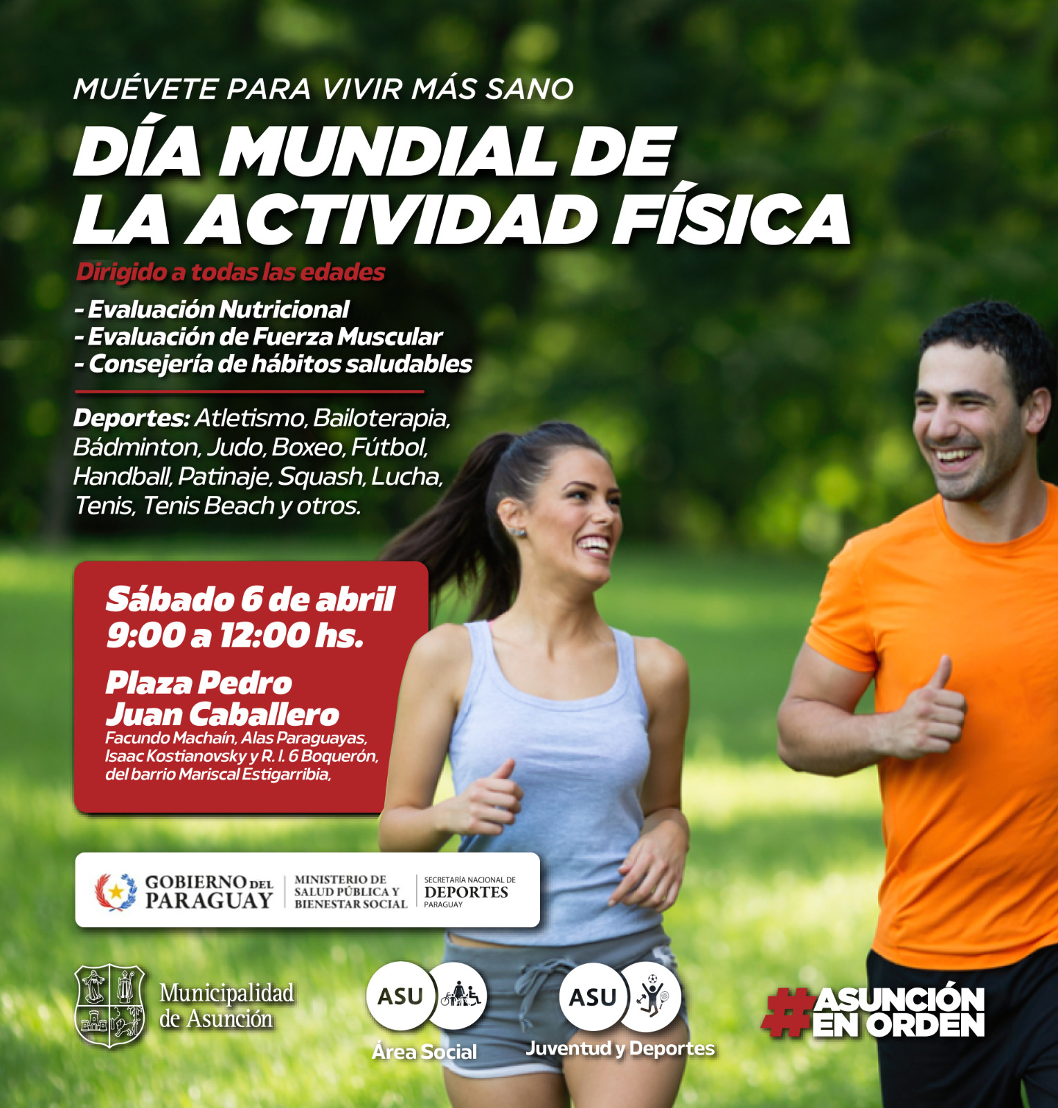 Asunción, Agencia IP.- En un esfuerzo conjunto por promover la actividad física y el bienestar de la población, la Secretaría Nacional de Deportes y la Municipalidad de Asunción organizan el evento multideportivo «Día Mundial de la Actividad Física: Muévete para Vivir Más Sano».