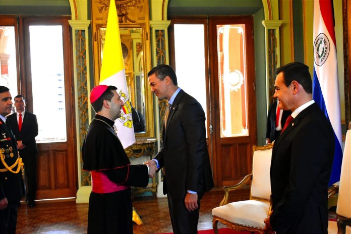 Asunción, Agencia IP.- El nuncio apostólico de Su Santidad el Papa Francisco en Paraguay, monseñor Vincenzo Turturro, presentó ese lunes sus cartas credenciales al presidente de la República, Santiago Peña.