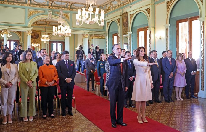 Asunción, Agencia IP.- El presidente de la República, Santiago Peña tomó juramento a los nuevos embajadores del Paraguay ante el Reino Unido de Gran Bretaña, Juan Ernesto Snead y ante los Emiratos Árabes Unidos, Carolin Konther López.
