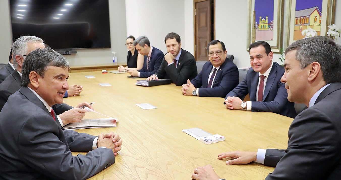 Asunción, Agencia IP.- El presidente de la República, Santiago Peña, conversó con el ministro de Desarrollo y Asistencia Social de Brasil, Wellington Dias, sobre la exitosa experiencia del vecino país en la lucha contra el hambre y la pobreza extrema.