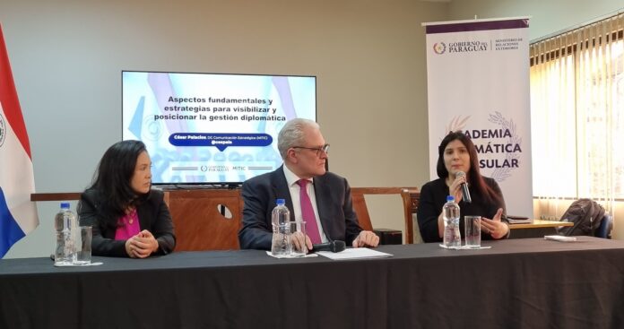 Asunción, Agencia IP.- La viceministra de Comunicación del Ministerio de Tecnologías de la Información y Comunicación, Alejandra Duarte Albospino y el director general de la Academia Diplomática y Consular, embajador Ricardo Scavone, presidieron la apertura del taller “Diplomacia y Medios de Comunicación” que se extenderá hasta el 9 de agosto en sede de la Academia Diplomática y Consular. La serie de capacitaciones forma parte de los planes de fortalecimiento de la comunicación del gobierno mediante un acuerdo del MITIC con el Ministerio de Relaciones Exteriores.