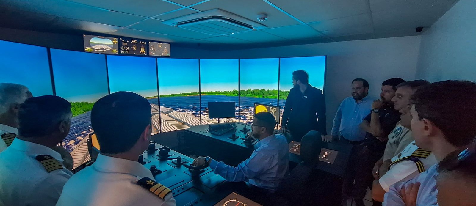El nuevo simulador, incorporado por la empresa Hidrovias do Brasil zona Sur Paraguay, incluye tecnología de última generación como radar y carta electrónica, ofrece una visión panorámica de 180 grados, lo que permite a los usuarios entrenar en una variedad de condiciones, tales como variaciones en profundidad, viento y condiciones climáticas.