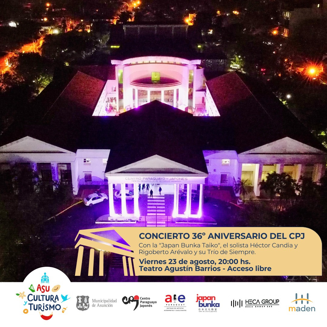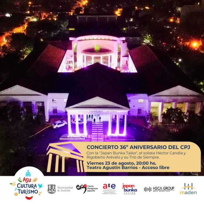 Asunción, Agencia IP.- Los 36 años de vida institucional del Centro Paraguayo Japonés serán celebrados con un concierto especial para la ciudadanía, previsto para este viernes 23 a las 20:00 horas, en el Teatro “Agustín Pío Barrios”, con acceso libre y gratuito para toda la familia.
