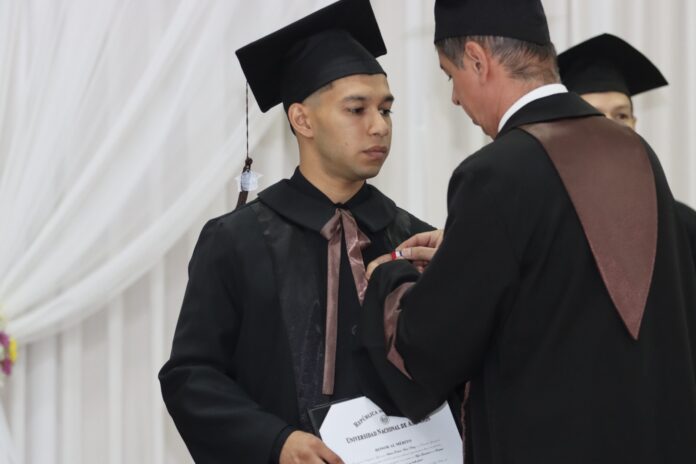 Asunción, Agencia IP.- El Ingeniero Agrónomo Roberto Adrián Areco Núñez, oriundo del departamento de San Pedro, recibió el Diploma de Honor al Mérito de la Universidad Nacional de Asunción y la medalla de honor, en la ceremonia de graduación de la FCA/UNA Filial San Pedro, llevada a cabo el viernes 23 de agosto.