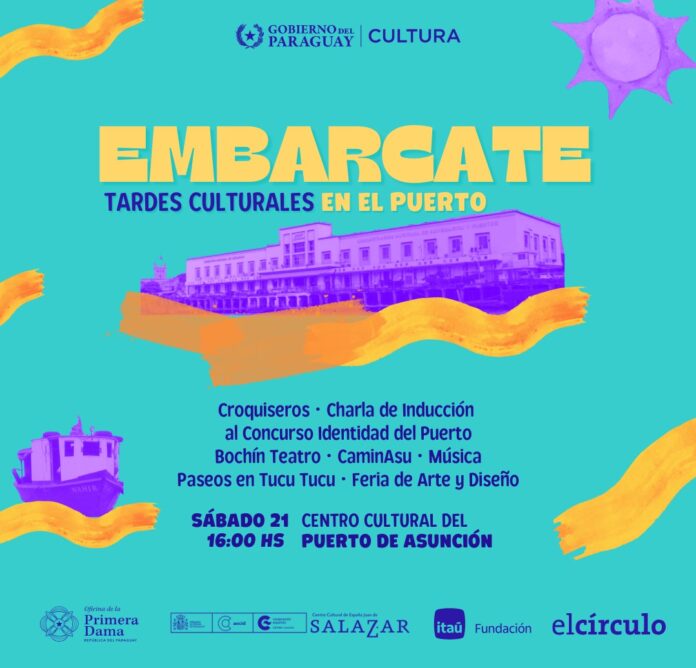 “Embarcate: tardes culturales en el Puerto de Asunción” es una actividad organizada por la Secretaría Nacional de Cultura, en colaboración con la Agencia Española de Cooperación Internacional (AECID), a través del Centro Cultural de España Juan de Salazar, con apoyo de la Oficina de la Primera Dama (OPD).
