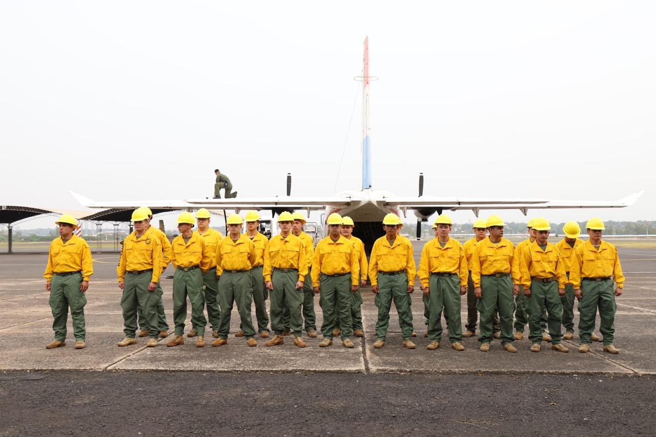 Asunción, Agencia IP.- Este domingo partió un contingente de 21 personales militares equipados para hacer frente a los incendios forestales en la zona del Parque Natural Monumento Cerro Chovoreca.