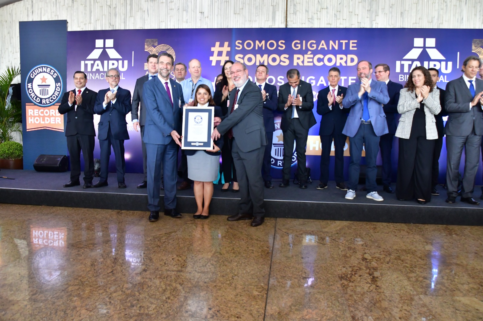 Asunción, Agencia IP.- La hidroeléctrica binacional Itaipu recibió este viernes el reconocimiento de la Guinnes World Records por la mayor producción de energía acumulada en el mundo, a lo largo de 40 años de funcionamiento.