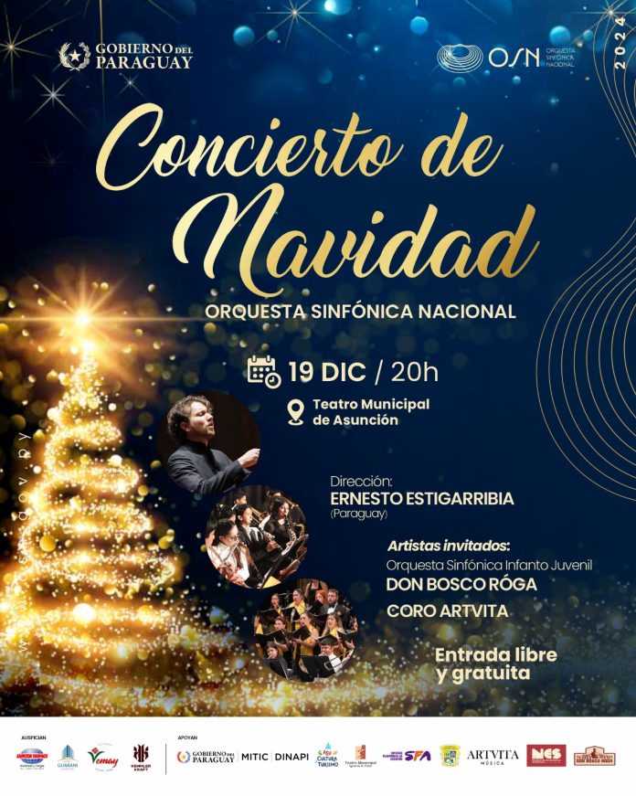 Asunción, Agencia IP.- La Orquesta Sinfónica Nacional (OSN) despedirá el año con el especial “Concierto de Navidad” este jueves 19 de diciembre, a las 20:00 en el Teatro Municipal de Asunción (Presidente Franco entre Chile y Alberdi – Asunción).