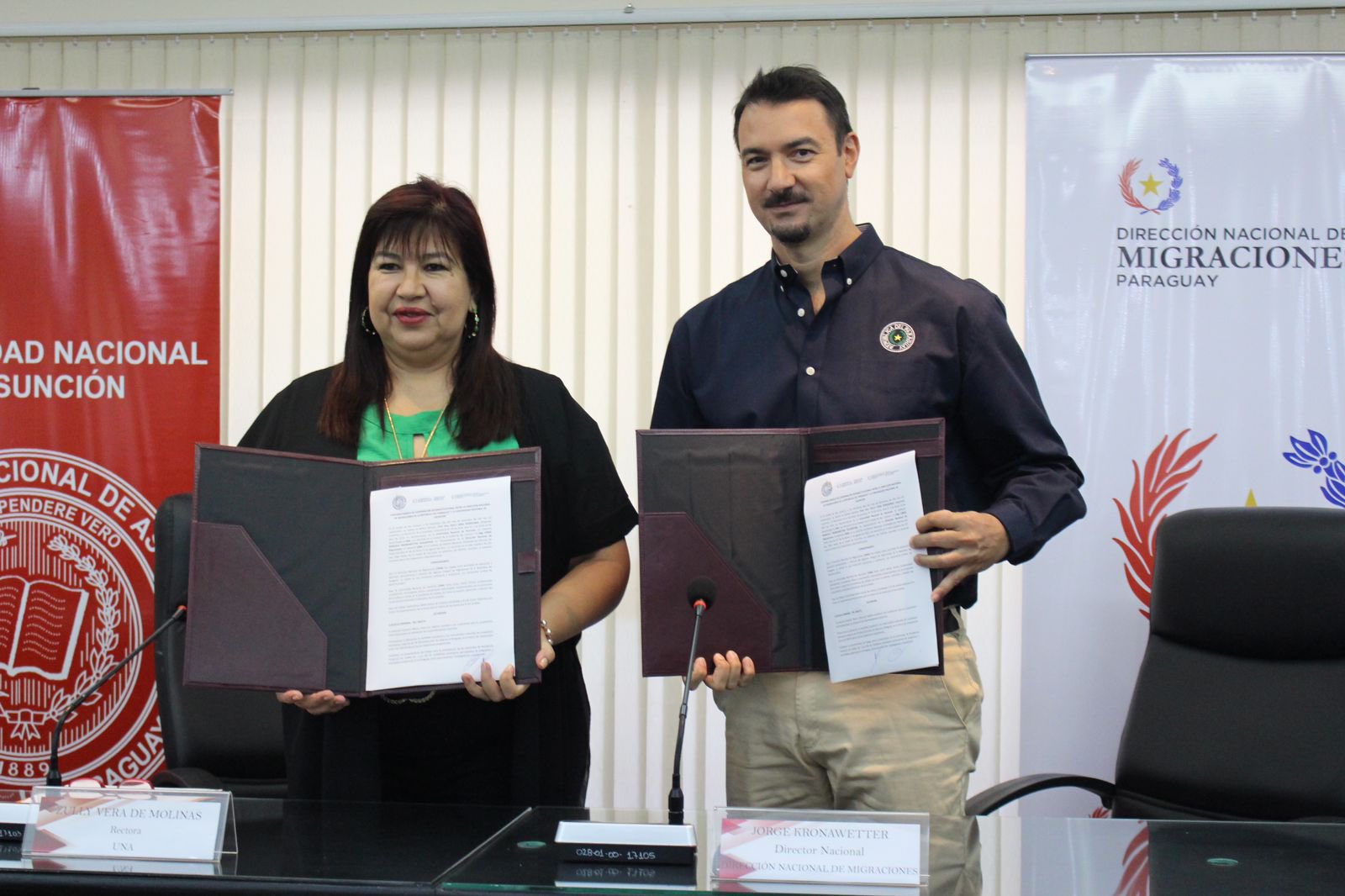 El documento fue rubricado por el director nacional de Migraciones, Jorge Kronawetter y la rectora de la UNA, Zully Vera, en un acto llevado a cabo en la víspera en el campus de San Lorenzo.