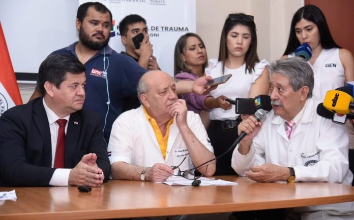 De la conferencia de prensa realizada en el Hospital del Trauma participaron el viceministro de Atención a la Salud y Bienestar Social, Santiago García; Juan Fernández Valdovinos, director del Hospital de Trauma; así como el director médico, Luís Carlos Báez y Jesús Marín, jefe de Servicios de Cirugía de Manos.