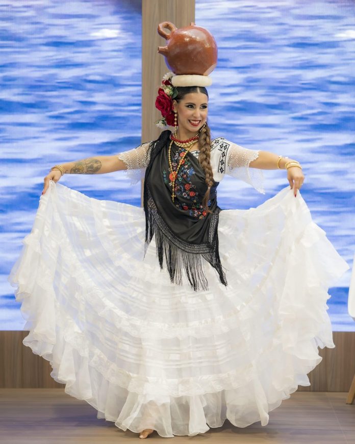 Uno de los momentos más emocionantes del espectáculo fue la ejecución de la tradicional danza de la botella. Liz Pereira, una de las bailarinas, logró equilibrar hasta ocho botellas sobre su cabeza mientras bailaba al ritmo de polkas emblemáticas como Campamento Cerro León.