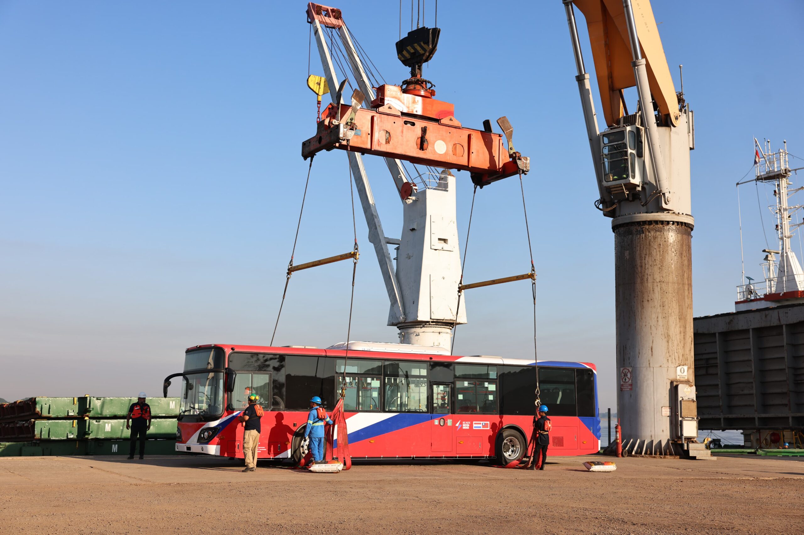 Los buses eléctricos, fabricados por la empresa taiwanesa Master Bus con el respaldo de la Embajada de Taiwán, arribaron este domingo a Puerto Seguro Fluvial SA, en la ciudad de Villeta, en el departamento Central.