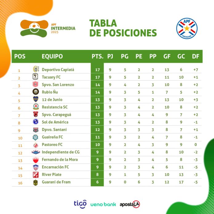 El puntero Capiatá con 17 unidades visitará Villa Hayes para enfrentar al local 12 de junio desde las 16:30 horas.