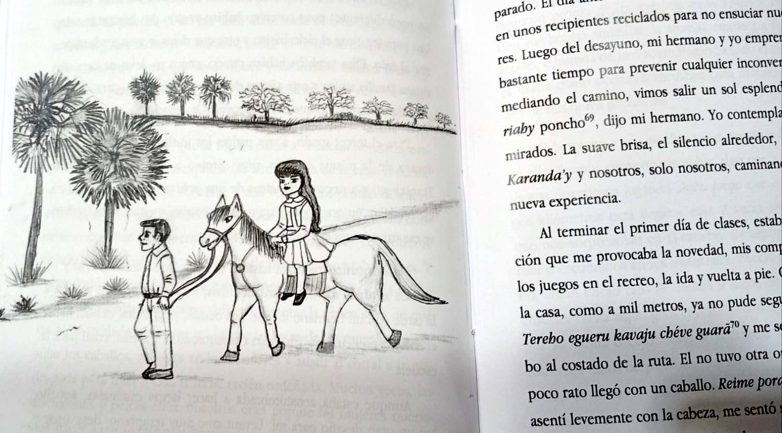 Sus libros “Aromita, Fragancias del Mandu´a”, y Jopara´i, están ilustrados con dibujos naif hechos por Graciela Lugo. Aromita o espinillo, en guaraní “añaga”, (Vachellia Caven) , es un arbusto propio del Chaco Paraguayo, con flores amarillas de agradable perfume. Se le atribuye cualidades curativas. La fotografía, tapa del libro, es obra de Brenda Báez Gaona.