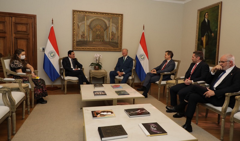 Asunción, Agencia IP.- El ministro de Relaciones Exteriores, Rubén Ramírez Lezcano, mantuvo una reunión con representantes de la Cámara de Comercio Paraguayo-Americana, en la sede de la Cancillería Nacional.