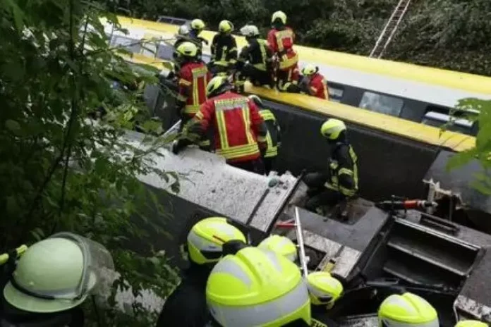 Berlin.-Varios vagones de un tren regional descarrilaron y uno de ellos se volcó completamente en marcha en el estado de Baden-Württemberg, en el suroeste de Alemania, que provocó al menos 4 muertos y más de 30 heridos en un convoy que transportaba a un centenar de pasajeros.