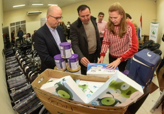 Asunción, Agencia IP.- Para mejorar la atención y calidad de vida de niños y adolescentes, el Hospital General Pediátrico recibió insumos médicos y sillas de ruedas por un valor de G. 122 millones, mediante un convenio entre el Ministerio de Salud Pública y la Dirección de Beneficencia y Ayuda Social.
