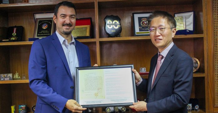 La entrega tuvo lugar durante un encuentro entre el director nacional de Migraciones, Jorge Kronawetter, y el encargado de Negocios de la Embajada de la República de Corea, Dong Gun Seo. Además de la entrega del presente conmemorativo, las autoridades dialogaron sobre el fortalecimiento del acompañamiento a la comunidad coreana residente en Paraguay.