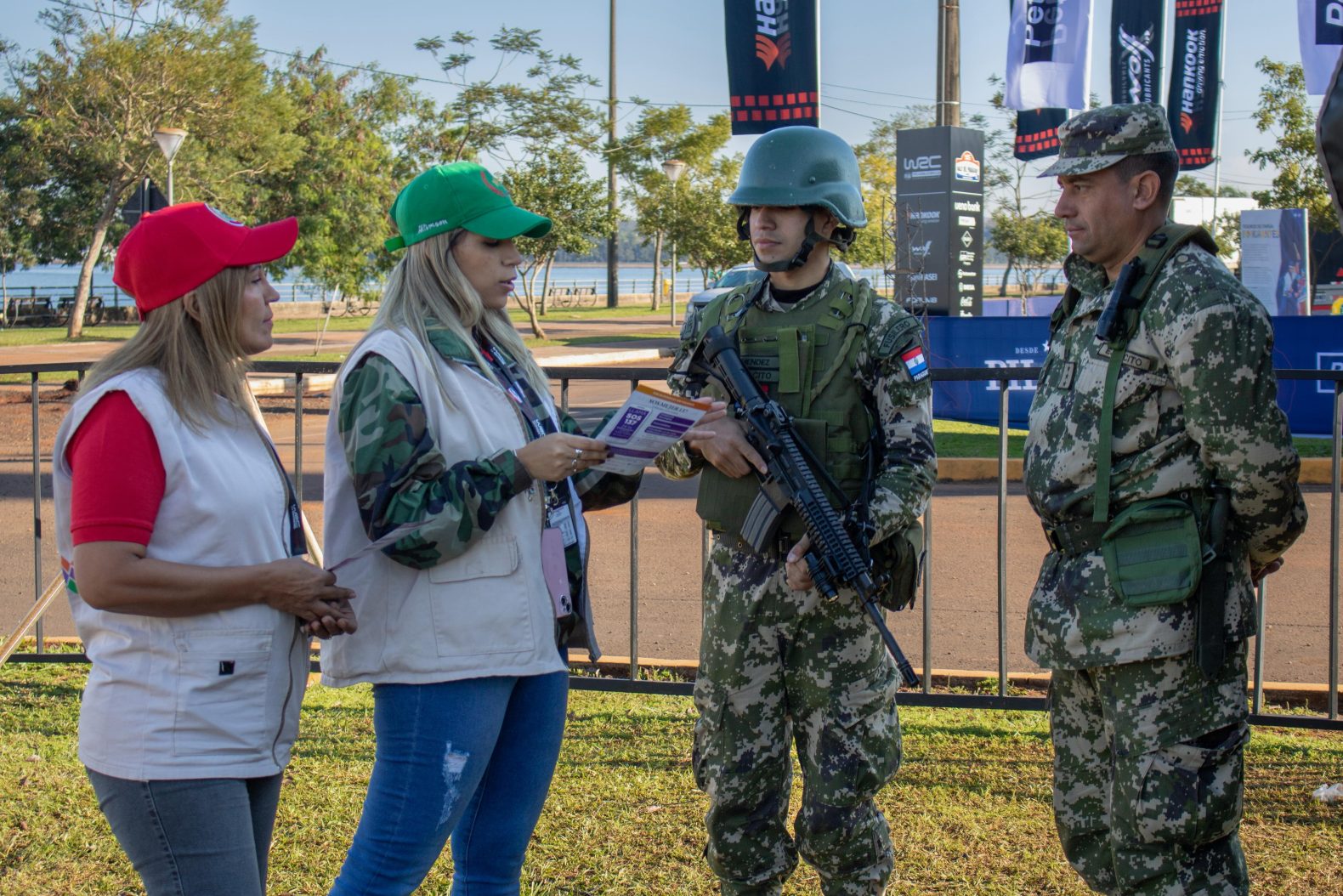 El equipo del Ministerio de la Mujer, encabezado por la ministra Cynthia Figueredo, se encuentra listo en Itapúa para el inicio del Campeonato Mundial de Rally (WRC) informando a las y los participantes del gran automovilismo mundial que se realiza, por primera vez, en el sur del país, sobre los servicios que brinda la institución, especialmente, en la protección de las mujeres y la prevención de trata de personas.