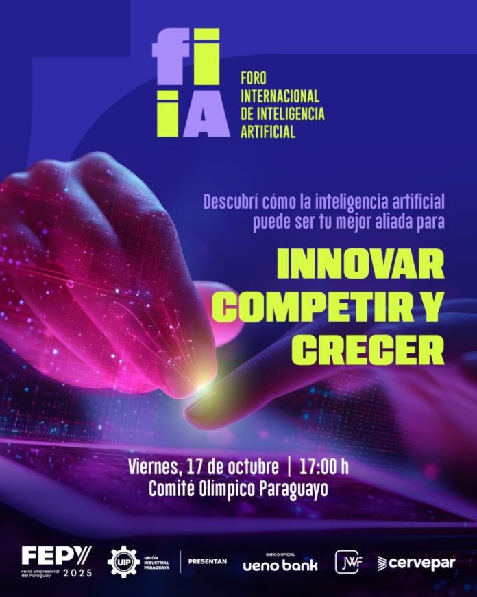 El Foro Internacional de Inteligencia Artificial (FIIA), que se celebrará el 17 de octubre a las cinco de la tarde, tendrá lugar en el Centro de Experiencias del Comité Olímpico Paraguayo. Este evento es gratuito y está dirigido a emprendedores, empresarios, académicos y al público en general.