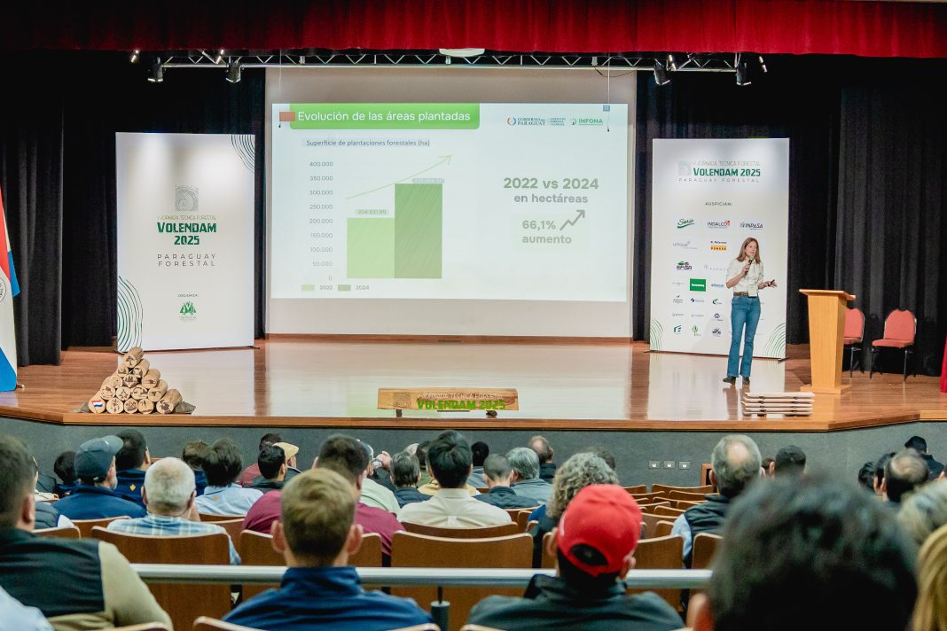 Asunción, Agencia IP.- El Instituto Forestal Nacional (INFONA) lanzó oficialmente el informe “Perfil y perspectivas del sector forestal paraguayo: Crecimiento, retos y oportunidades” durante la V Jornada Técnica Forestal Volendam 2025, realizada en el Auditorio de la Colonia Volendam. La presentación estuvo a cargo de la Ing. Cristina Goralewski, Presidenta del INFONA, quien presentó los principales hallazgos del documento.