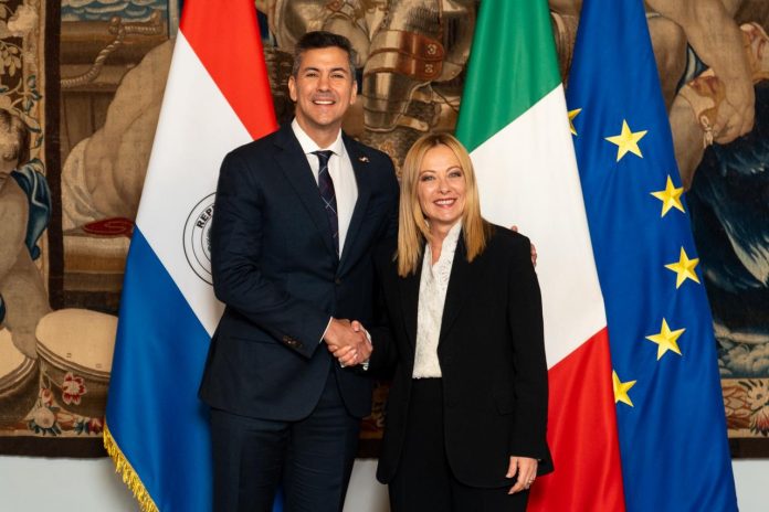 Asunción, Agencia IP.- El presidente de la República, Santiago Peña, se reunió este martes en Roma con la primera ministra de Italia, Giorgia Meloni, ocasión en la que coincidieron «sobre las nuevas oportunidades que se abren para seguir trabajando juntos en áreas clave».