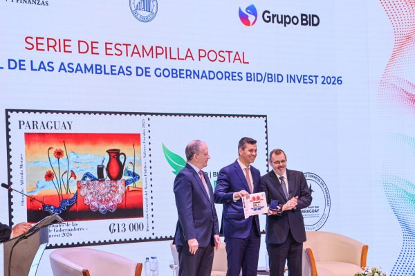 Durante el acto, el ministro Fernández Valdovinos presentó al mandatario la estampilla conmemorativa de las Asambleas Anuales del BID y BID Invest que se realizarán en Paraguay en el 2026. A su vez, el presidente del Banco Central del Paraguay (BCP), Carlos Carballo, presentó la moneda conmemorativa del evento.