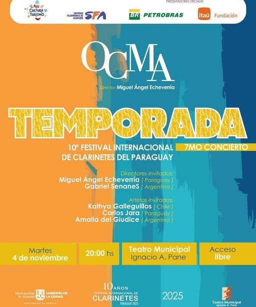 Asunción, Agencia IP.- La Orquesta de Cámara Municipal de Asunción ofrecerá un concierto dentro del décimo Festival Internacional de Clarinete de Paraguay, en el Teatro Municipal Ignacio A. Pane, este martes 4 de noviembre a las 20:00 horas, con acceso libre y gratuito.