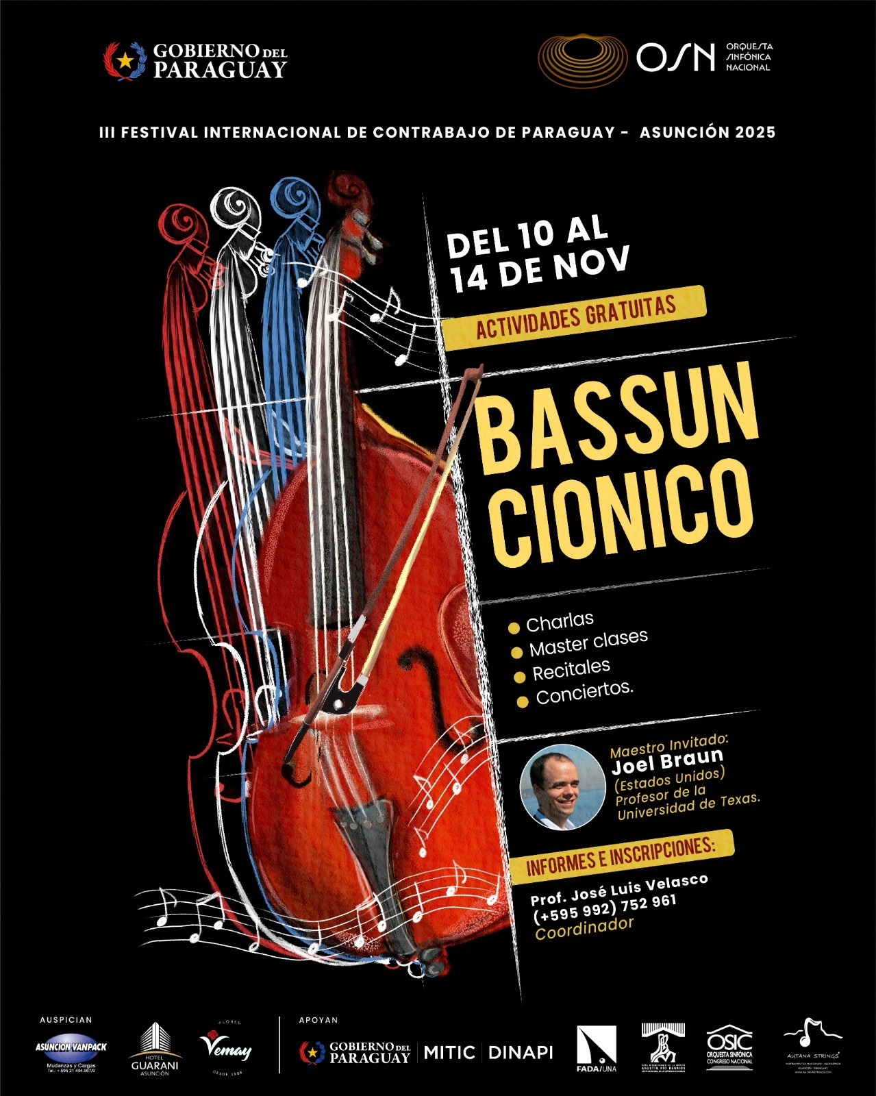 “Bassunción” reafirma su compromiso con la formación y el crecimiento del contrabajo en Paraguay, consolidándose como un referente artístico y educativo regional, con el apoyo de la OSN, la FADA-UNA, la OSIC y la Casa de la Música.