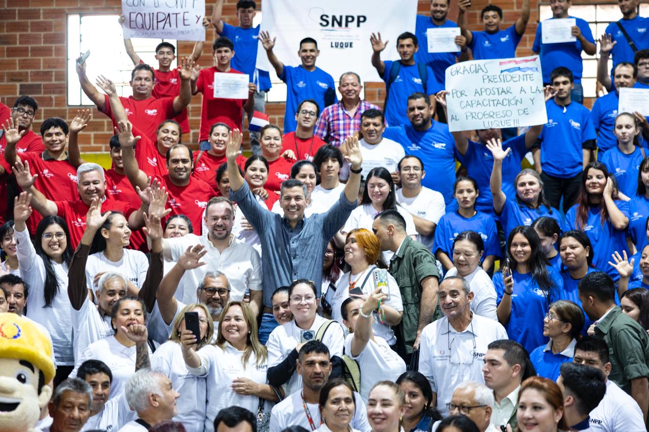 Asunción, Agencia IP.- El presidente de la República, Santiago Peña, encabezó este miércoles el acto de entrega de aportes y de subsidios habitacionales a 134 familias del departamento Central, así como títulos de propiedad, capital semilla y herramientas de trabajo para jovenes y adultos capacitados en oficios varios.