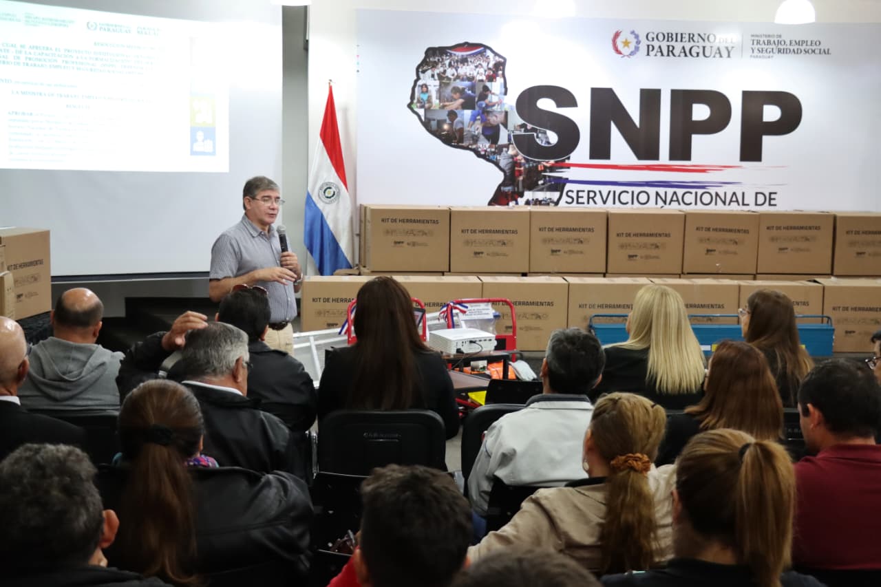 La implementación del Programa “EQUIPATE con el SNPP: de la Capacitación a la Formalización”, es una iniciativa del Gobierno del Paraguay, aprobado por la Resolución Nº 794/2025 del Ministerio de Trabajo, Empleo y Seguridad Social (MTESS), y ejecutado mediante el Servicio Nacional de Promoción Profesional (SNPP), diseñada para acompañar a los egresados de cursos de diversas áreas de formación profesional, en su transición hacia el mercado laboral formal.